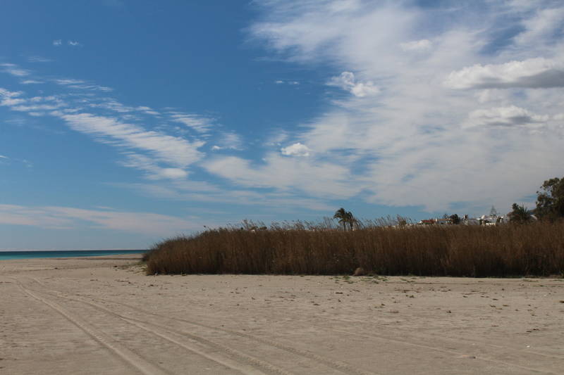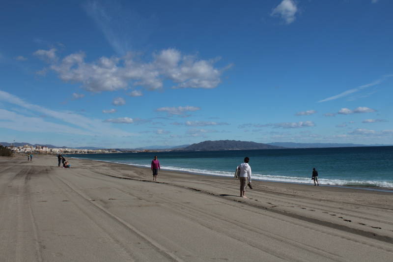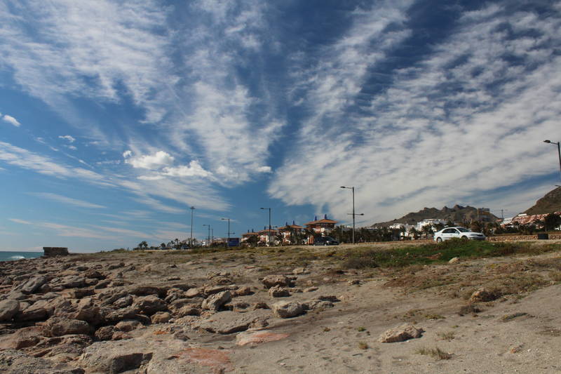 Saliendo desde Garrucha en dirección a Mojacar, y tras pasar la rotonda, junto a la que hay una antigua edificación, concretamente los restos de un antiguo cargadero de mineral, encontraras una urbanización entre la que figuran algunos hoteles y hasta llegar a la desembocadura del Río Aguas.