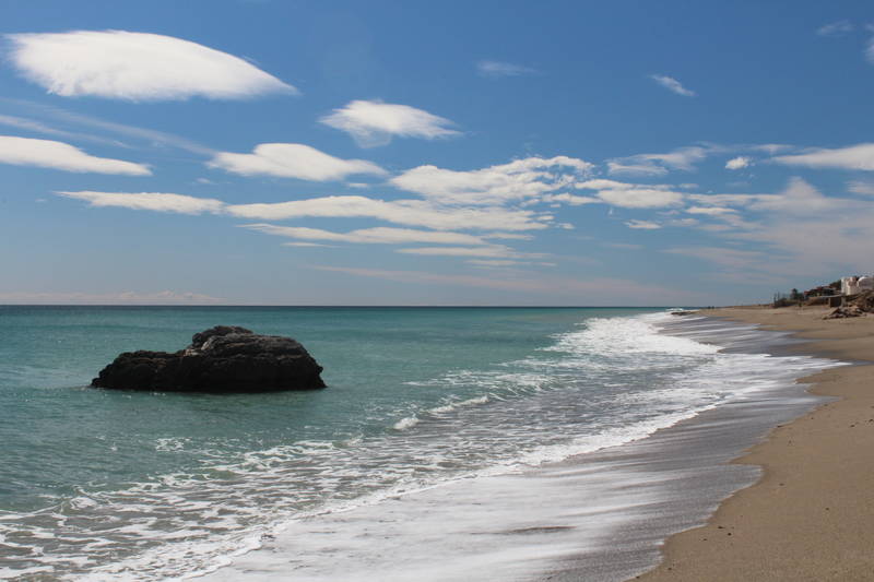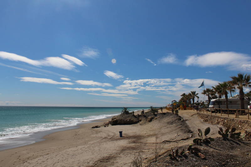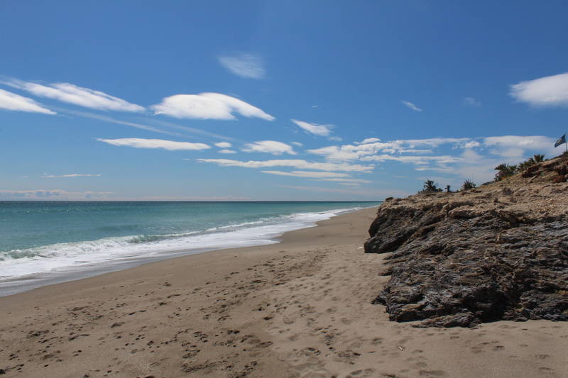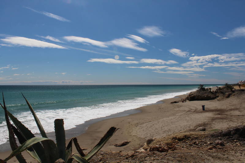 Si te colocas mirando al mar a la altura de El parque Comercial, estarás viendo el inicio de la playa de Piedra de Villazar que trascurre unos cuantos kilómetros en dirección a Carboneras  y aproximadamente hasta el Mándala, es la playa que esta frente al Parador de Turismo
