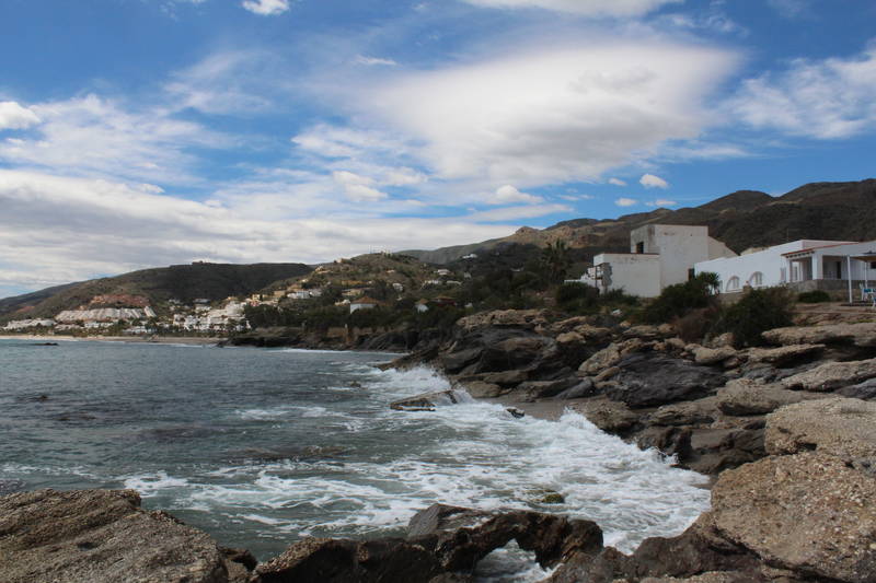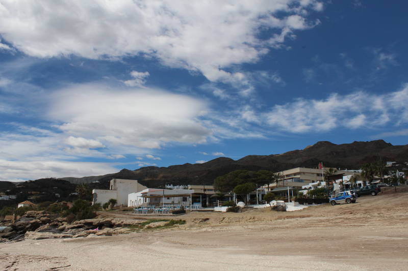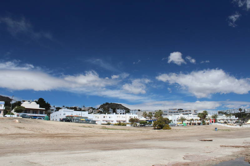 Para encontrar la Playa Cueva del Lobo tendremos que dejar atrás la zona de los chiringuitos. Iremos en dirección Carboneras llegando a la Urbanización Pueblo Indalo.